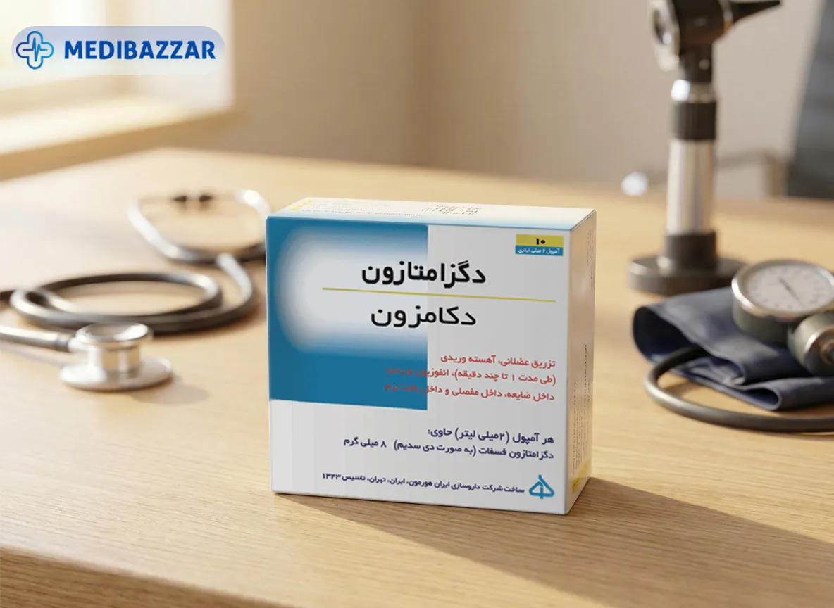 آمپول دگزامتازون (Dexamethasone Injection) یک داروی کورتیکواستروئیدی قوی است که برای کنترل التهابهای شدید، واکنشهای آلرژیک، برخی دردهای التهابی و شرایط بحرانی پزشکی استفاده میشود. این دارو با تقلید اثر هورمونهای طبیعی غده فوقکلیه، فرایندهای التهابی و ایمنی را مهار میکند و به کاهش تورم، درد و واکنشهای ایمنی شدید کمک میکند.